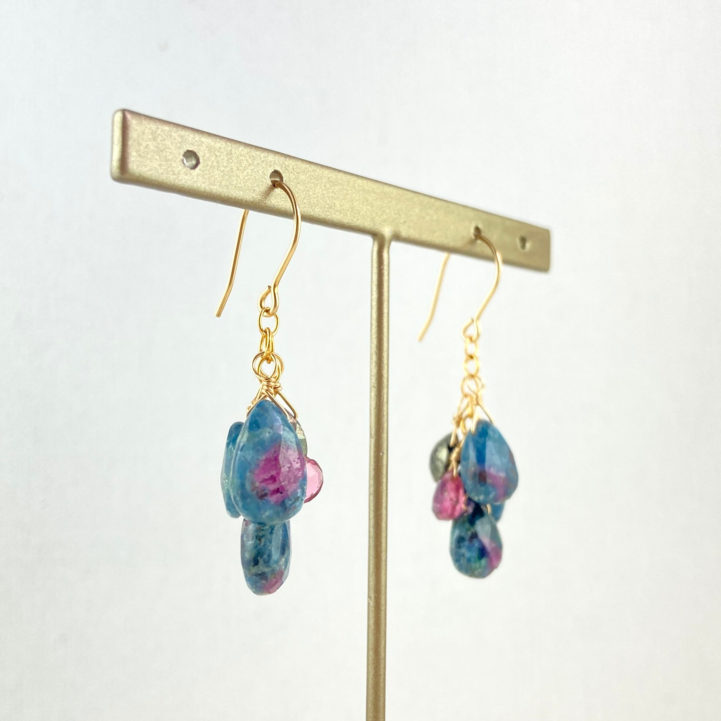 ルビーインゾイサイトとピンクトルマリン・パイライト を組み合わせたピアスです。